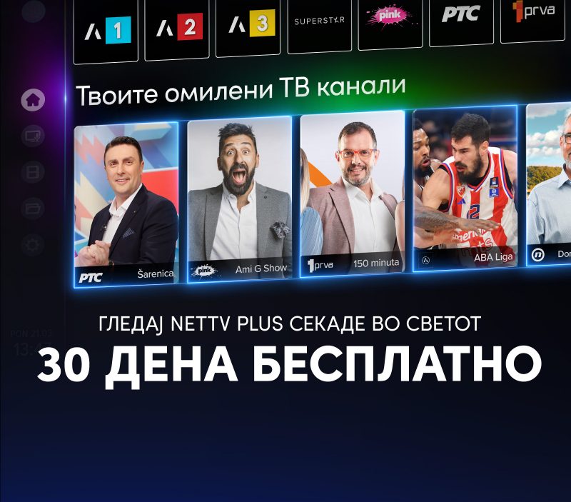 NetTV Plus е водечка ТВ платформа наменета за корисници од Србија, Хрватска, Босна и Херцеговина, Словенија, Северна Македонија и Црна Гора, кои живеат во странство, обезбедувајќи им пристап до најдобрите регионални канали и уникатни локални содржини. Можете да пристапите на оваа платформа секаде каде што имате висококвалитетна фиксна или безжична интернет конекција со брзина од 5Mbps.